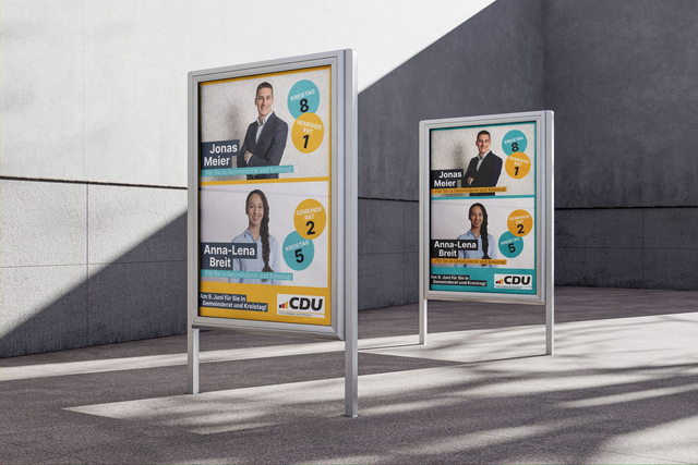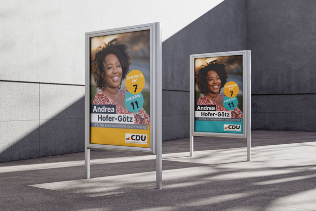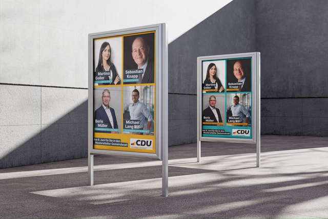 Ihr professionelles Hohlkammerplakat mit Ihrem Kopf. Wir produzieren Ihnen ein "echtes" Wahlplakat auf einer Hohlkammerplatte, wie es von den großen Parteien eingesetzt wird.