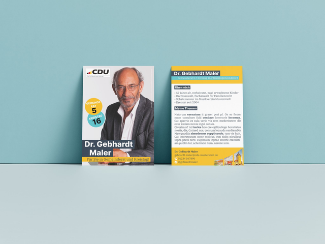 Ihre individuelle Kandidatenpostkarte auf hochwertigem 250g/m2 Bilderdruckpapier zum Straßenwahlkampf!